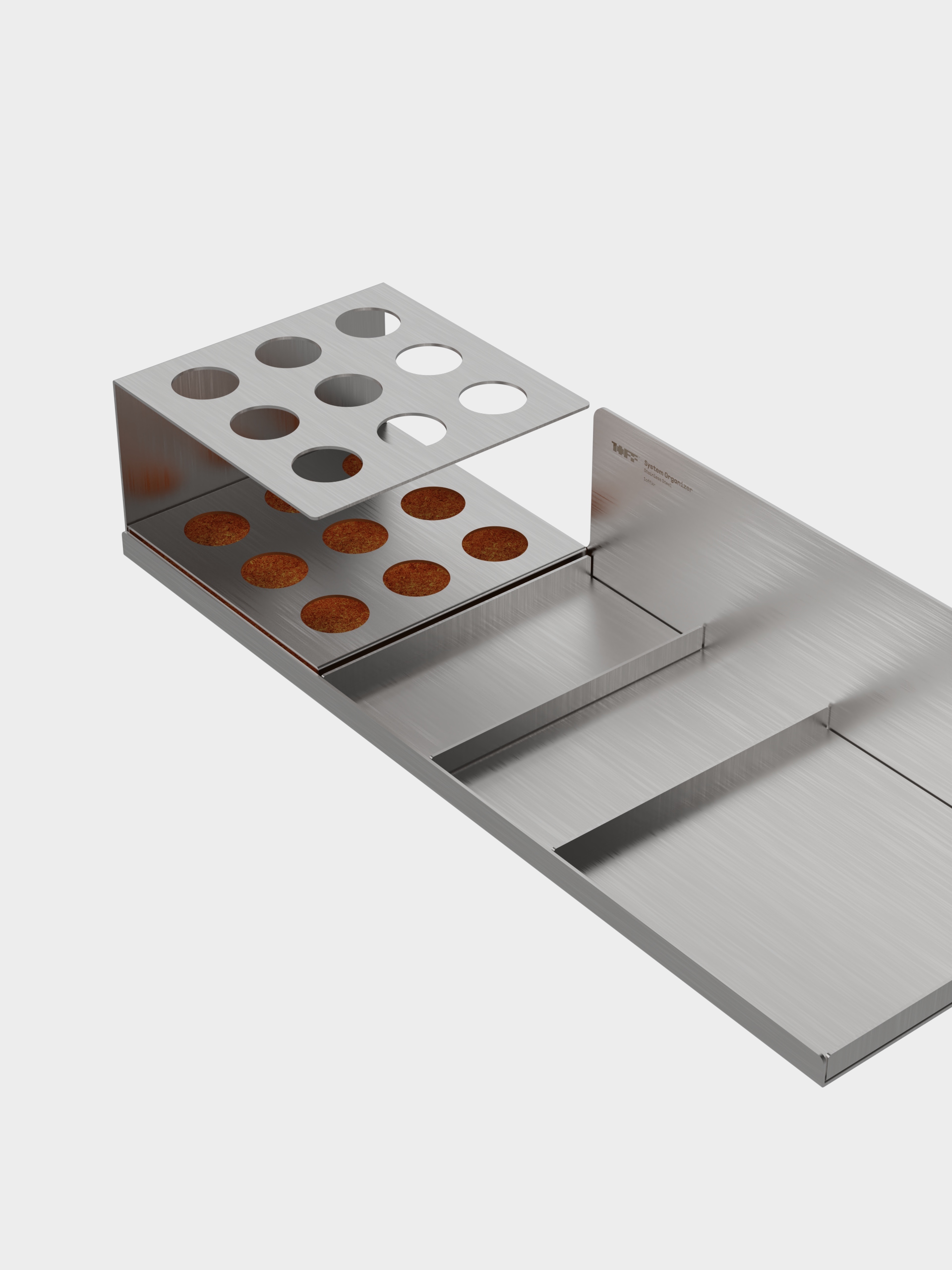 SUS 304 재질로 구성된 모듈 형태의 오거나이저입니다.