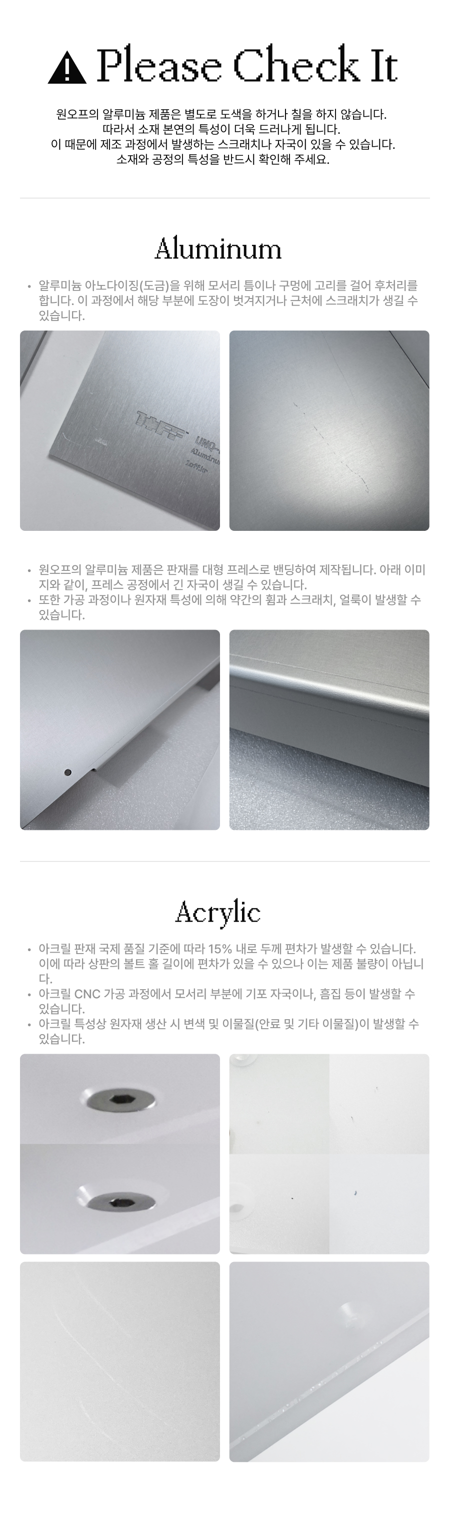 - 모니터 상의 색상이나 질감 차이, 원자재 및 제조 공정상 발생할 수 밖에 없는 부분의 경우, 교환 및 반품이 불가합니다.