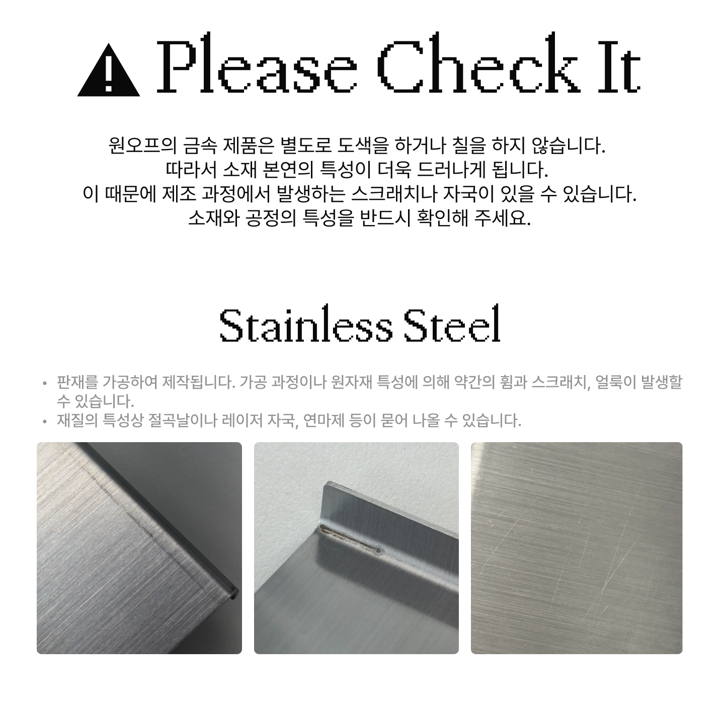 - 모니터 상의 색상이나 질감 차이, 원자재 및 제조 공정상 발생할 수 밖에 없는 부분의 경우, 교환 및 반품이 불가합니다.