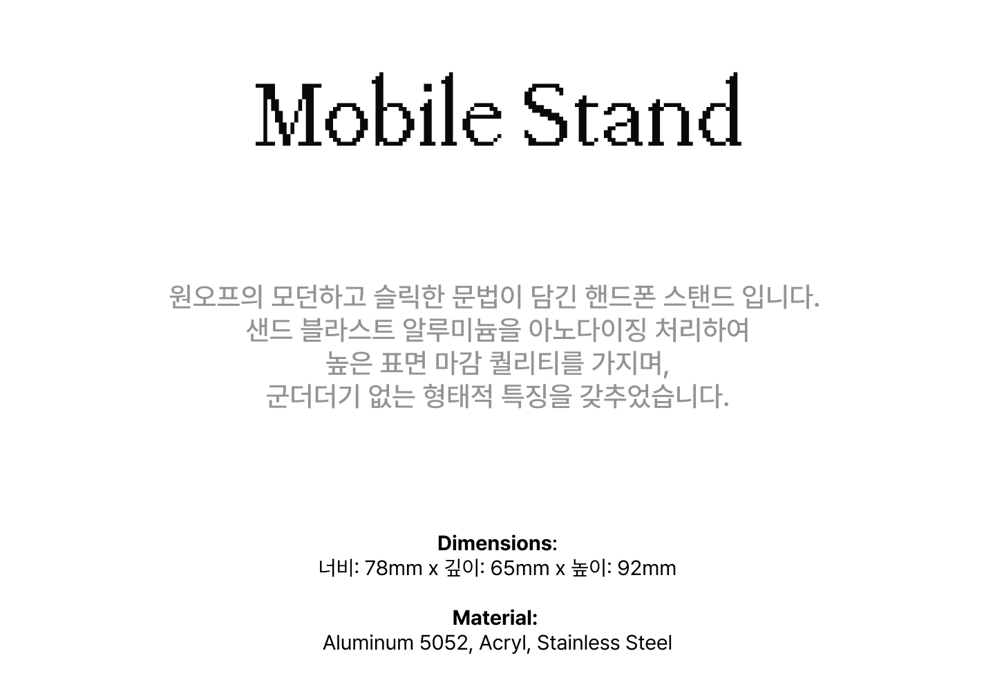 원오프의 모던하고 슬릭한 문법이 담긴 핸드폰 스탠드입니다.