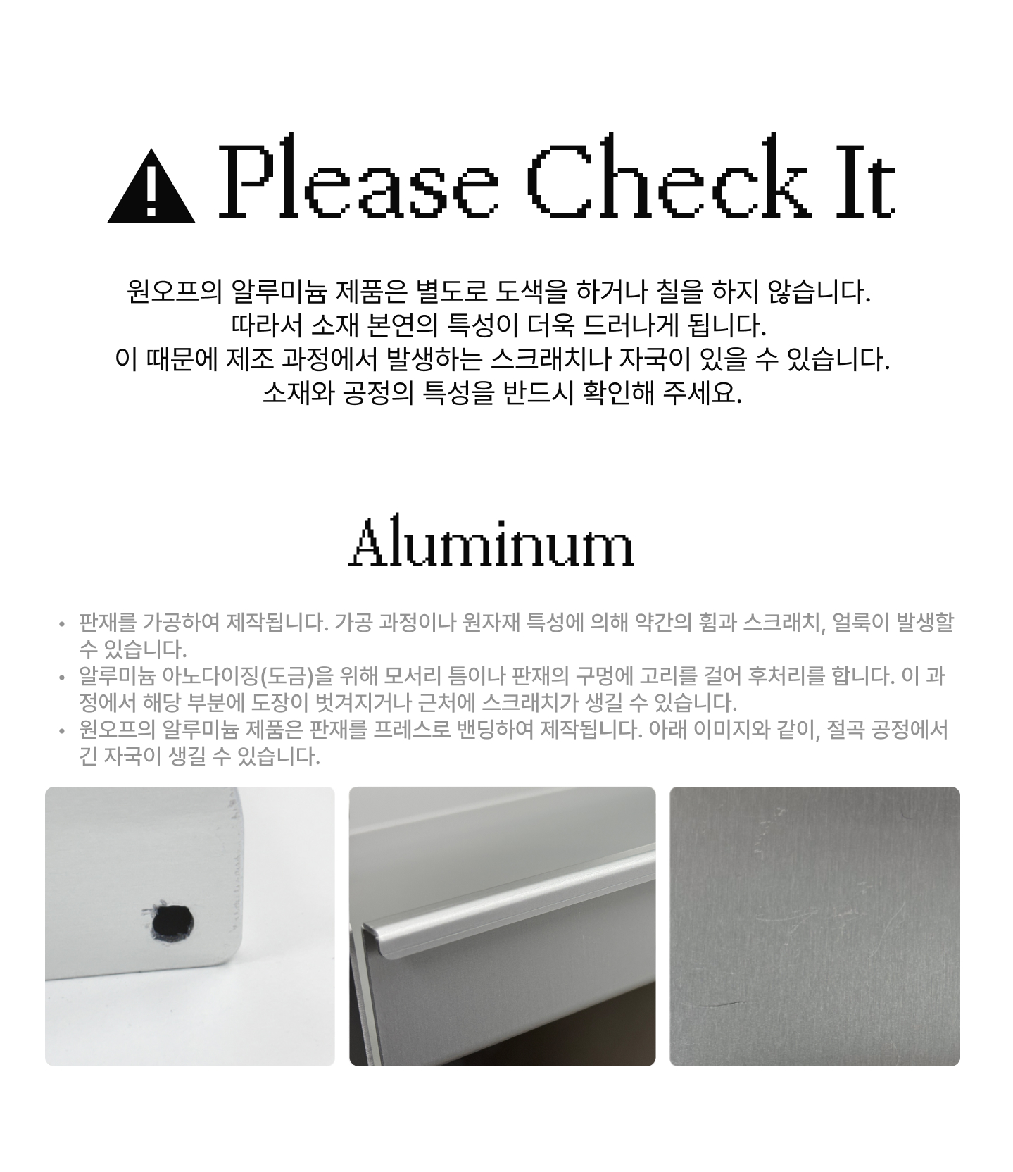 - 모니터 상의 색상이나 질감 차이, 원자재 및 제조 공정상 발생할 수 밖에 없는 부분의 경우, 교환 및 반품이 불가합니다.